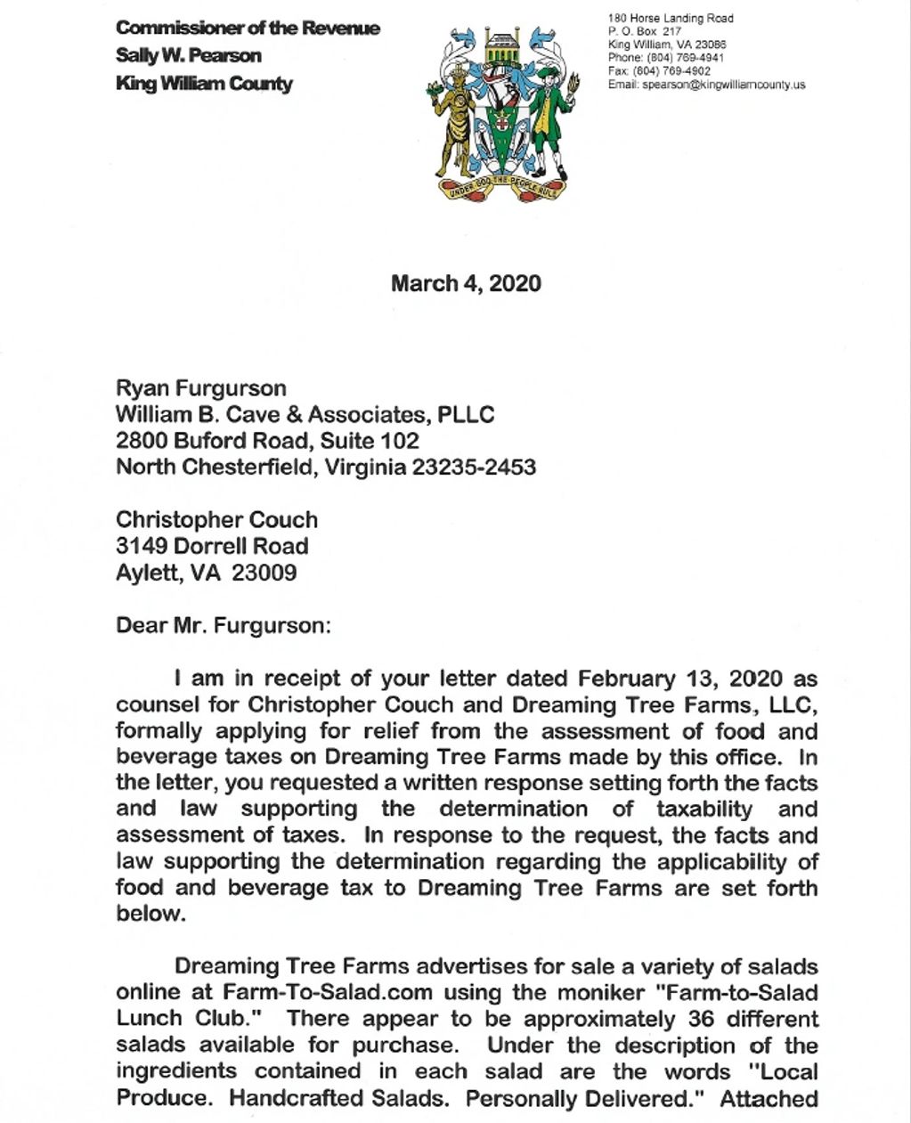 Dreaming Tree Farms is proud to be standing up to the despots in King William County that are trying to tax customers of the farm without being able to justify their position.